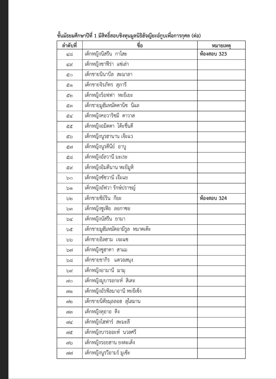 ประกาศรายชื่อผู้มีสิทธิ์สอบเข้าศึกษาต่อชั้น ม.1,ม.4 และผู้มีสิทธิ์เข้าสอบชิงทุนมูลนิธิฮัจญียะอ์กูบเพื่อการกุศล ประจำปีการศึกษา 2566